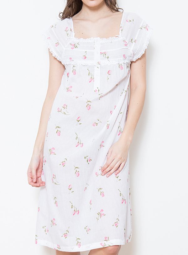 Crisp & stylish, this melon sleeve 100% Cotton Voile nightdress features a delicate Rosebud design with soft quipure lace detail.