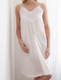 Elegant & sophisticated this lightweight 100% Deluxe Cotton Batiste spaghetti strap nightdress is absolutely gorgeous.Delicate floral design quipure lace adorns the V neck of this sensual nightdress finished with dainty bows on the adjustable straps.Gently gathered under the bust line, the softness of the 100% Batiste Cotton flares slightly creating a gorgeously feminine silhouette .Why not match with CHAY Kimono….Length: 107cm