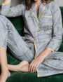 With all the classic details , from a neat collar and front pocket to contrast lemon piping, the Pyjama top has 3/4 length sleeves and 4 buttons.