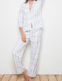 Why not Sleep in style in these stunning Soft Touch 100% Pure-Cotton PJ set with intricate Charcoal tramline check detail.The stylish revere collar pyjama top has 3/4 length sleeves, 4 buttons, mini chest pocket, soft Pale Pink satin bandings and cut out detail on the cuff.The full length pyjama pants have a deep cuffed hem with contrast satin banding, a semi- elasticated waist with button and drawstring tie,.A great pair of 100% Cotton Lawn Pyjamas which are ideal for all occasions.Length: 68/102cm