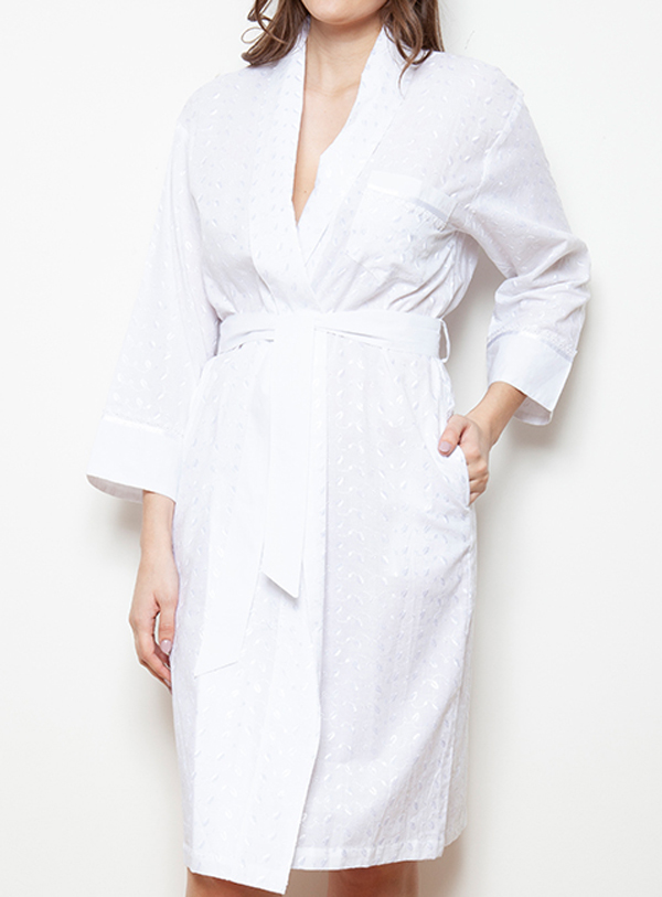 100% Cotton Lawn Broderie Anglaise Grace Shawl Collar robe.Stylish dressing gown which has a full length tie belt and two side entry pockets.
